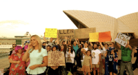 Hundreds of dedicated Aussies headed down to Sydney’s Opera House this morning, all in the name of TV talk show host Ellen DeGeneres and her offer to fly two Australians back to LA to watch her show live.